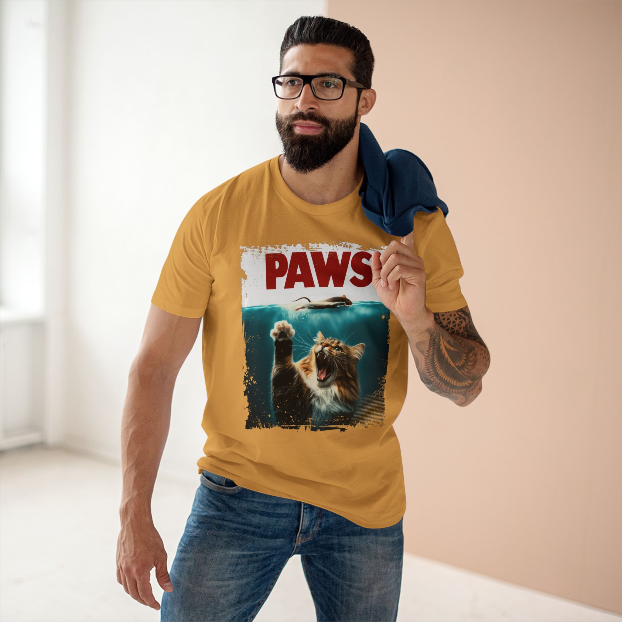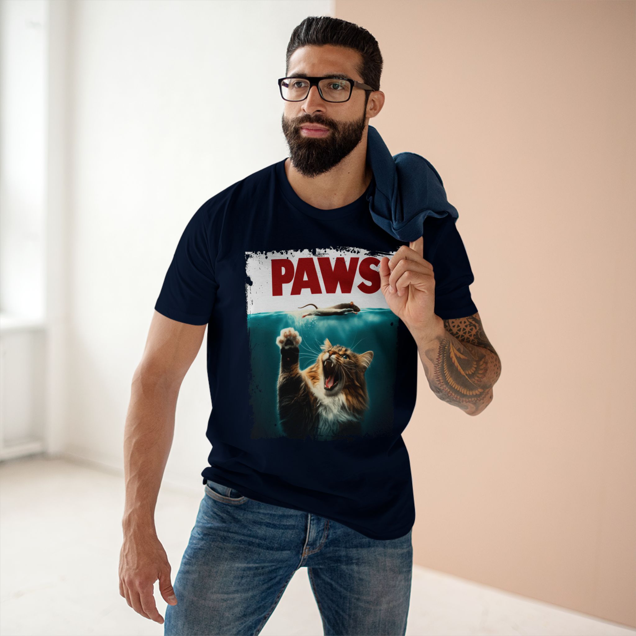 Fun Cat-Themed Adult Staple Tee – “PAWS” Graphic T-Shirt for Animal Lovers